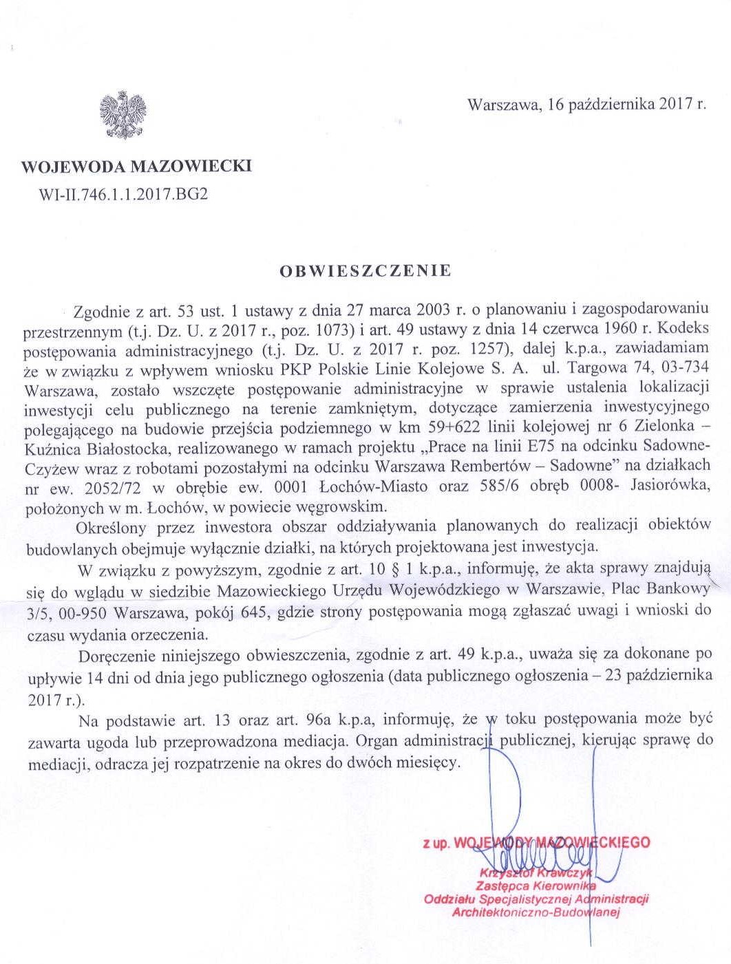 OBWIESZCZENIE WOJEWODY MAZOWIECKIEGO